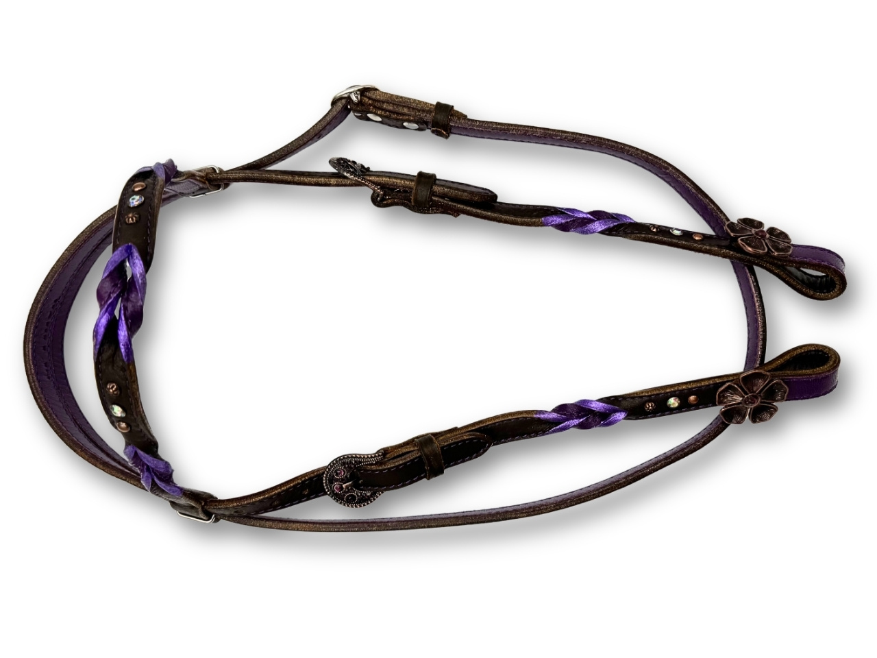 Edle Westerntrense in Dunkelbraun/Lila mit Flower-Conchos